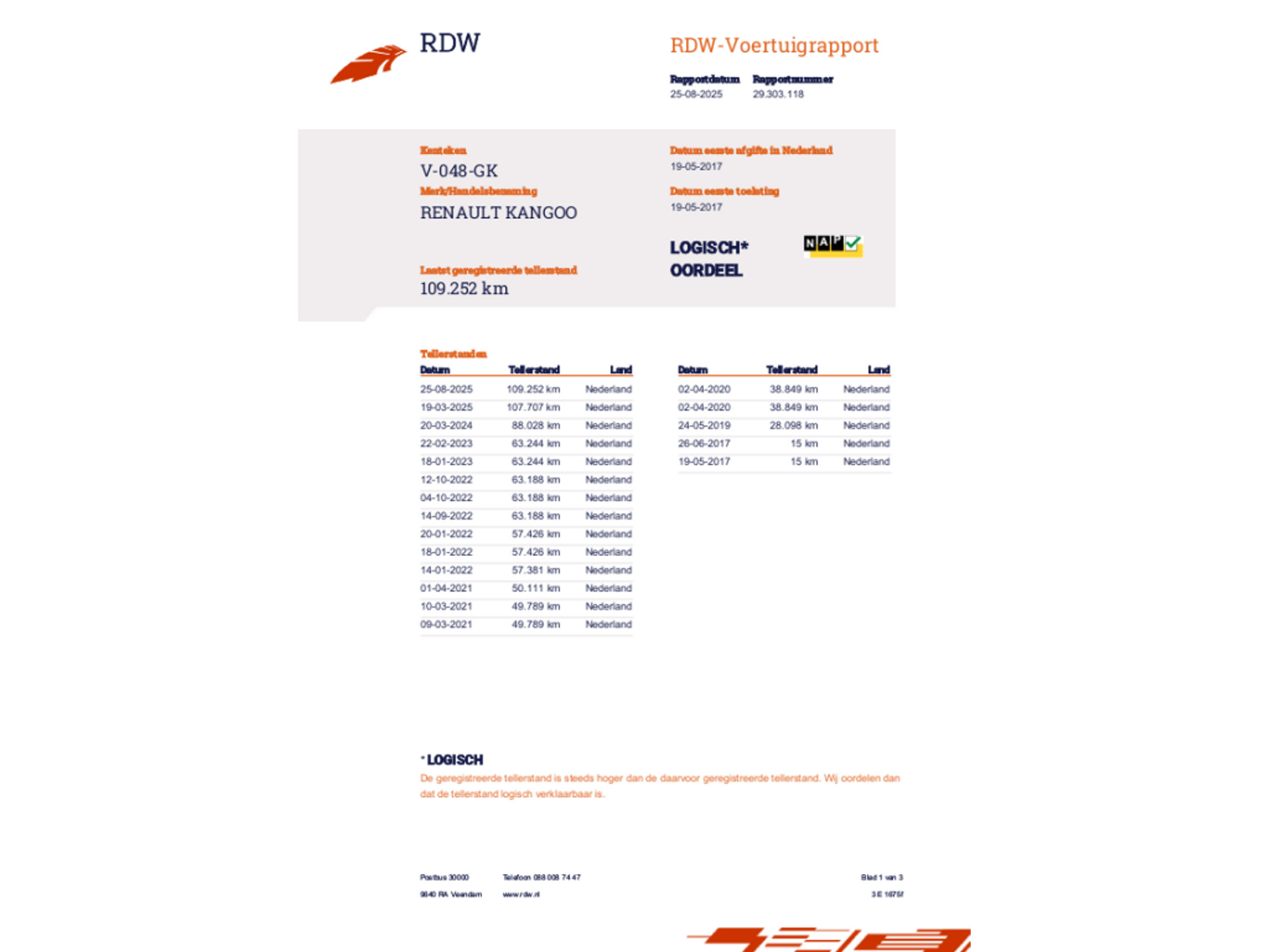KM stand109.319 km |